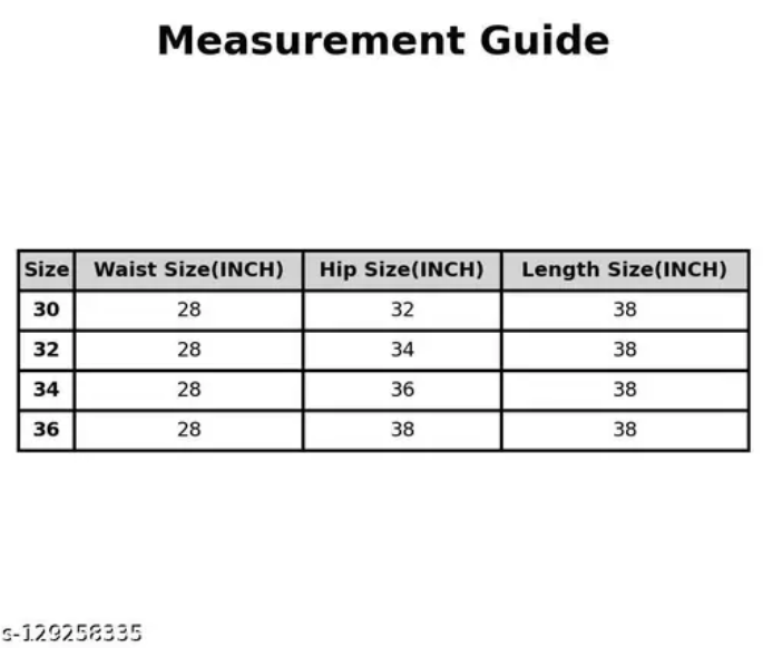 Free Size (Waist Size : 28 in, Length Size: 36 in, Hip Size: 34 in)