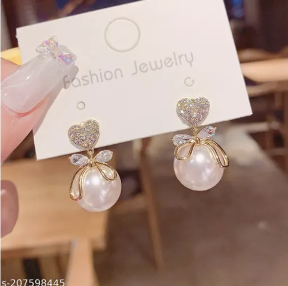 Name : Earrings For Girls AD studded Heart Pearl Drop Earrings For Women Girls
